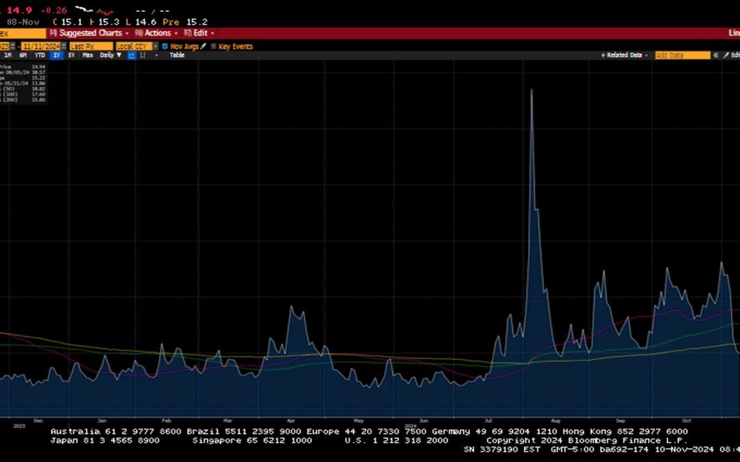 The S&P 500 notched its 50th all-time high of 2024 as investors piled into equities after a decisive US election. Wall Street embraced the idea that President-Elect Trump would enact several pro-growth policies to bolster corporate profits. Lower taxes, deregulation, and a protectionist stance on trade sent Small-caps, Financials, and Technology higher. The definitive results sent VIX, a measure of volatility, lower by 5 points or nearly 22% in a single day! The notion of lower taxes and no fiscal austerity initially hit the bond market, where the US 10-year yield advanced by seventeen basis points. Interestingly, the bond market settled down over the next three sessions to end the week higher.